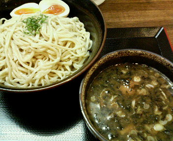 つけ汁は魚粉系で鰹の風味の強い和風タイプ。少しとろみがある。
