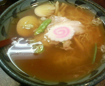 麺は細縮れでスープと合っている。 具はナルト、きぬさや、メンマ、味玉、チャーシュー。 チャーシューの味付けがいい感じだが、玉子はイマイチ。
