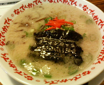 極細ストレート麺に白濁した豚骨スープのラーメンは、典型的な九州ラーメン。